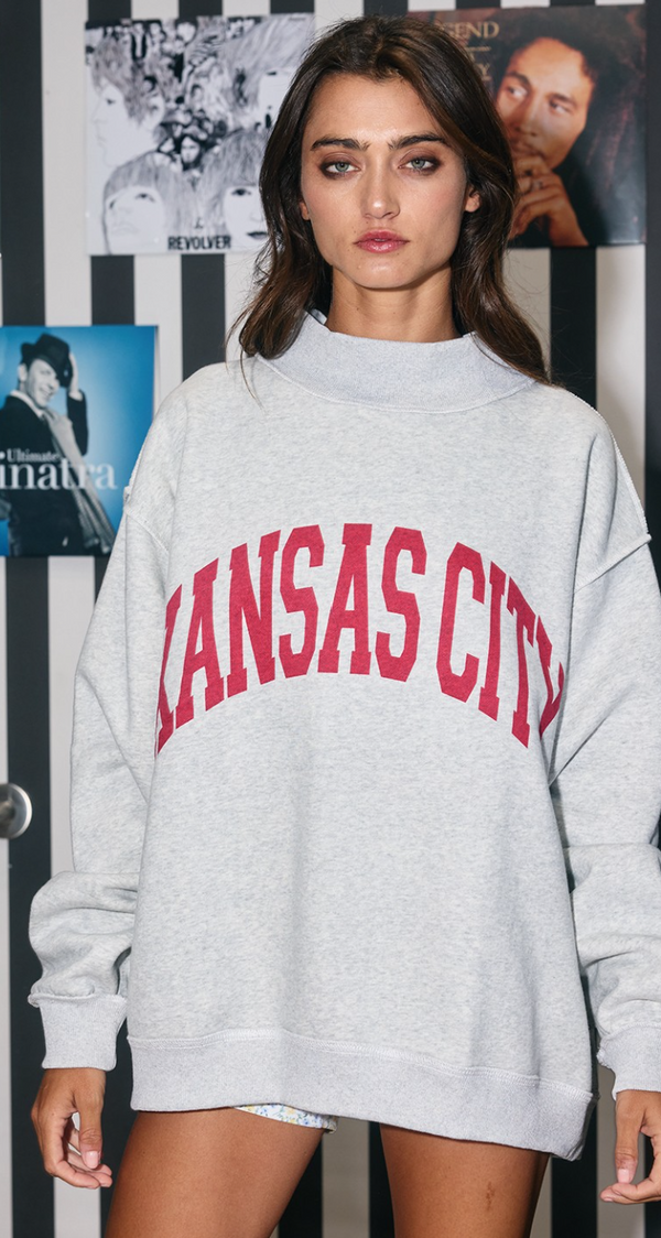 Kansas City Reversible Mock Neck Sweatshirt in Heather Grey