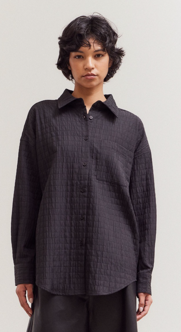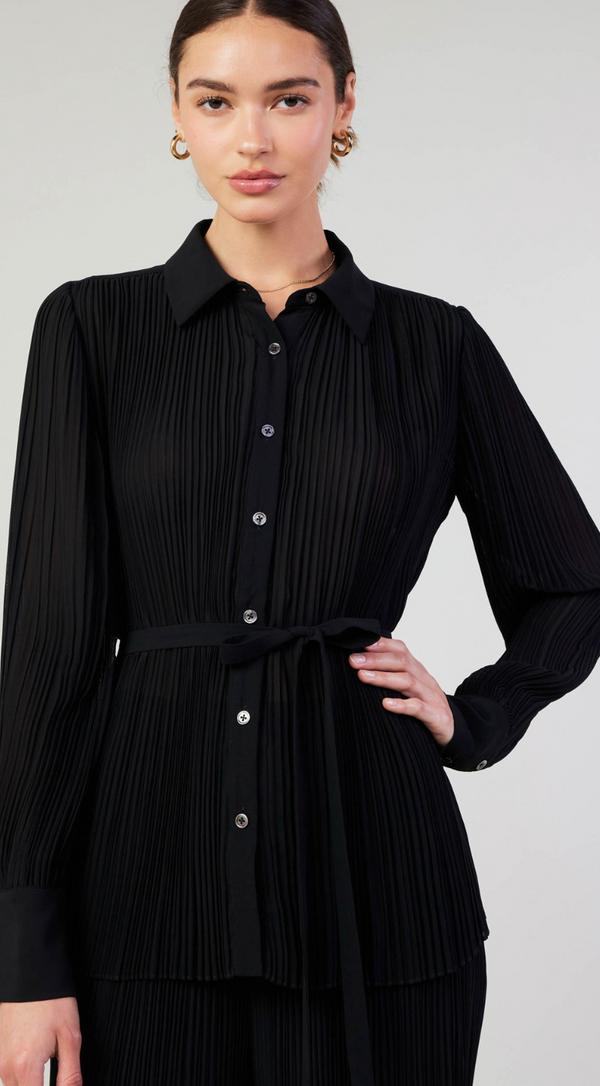 Kathleen Pleated Button Up in Black