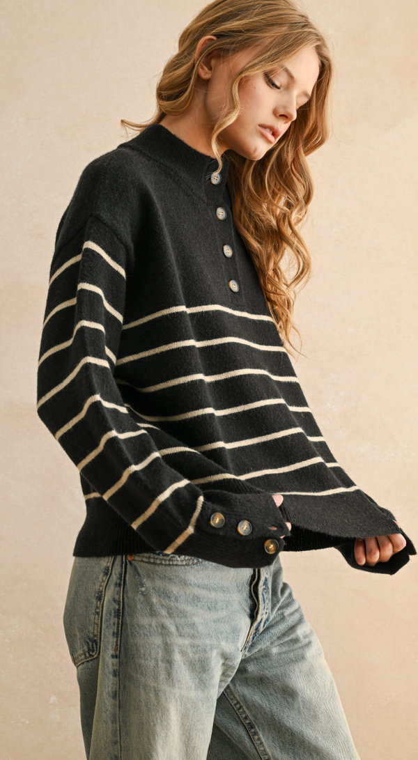 Maia Striped Sweater in Black