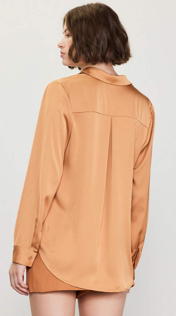 Molly Satin Button Down in Hazelnut