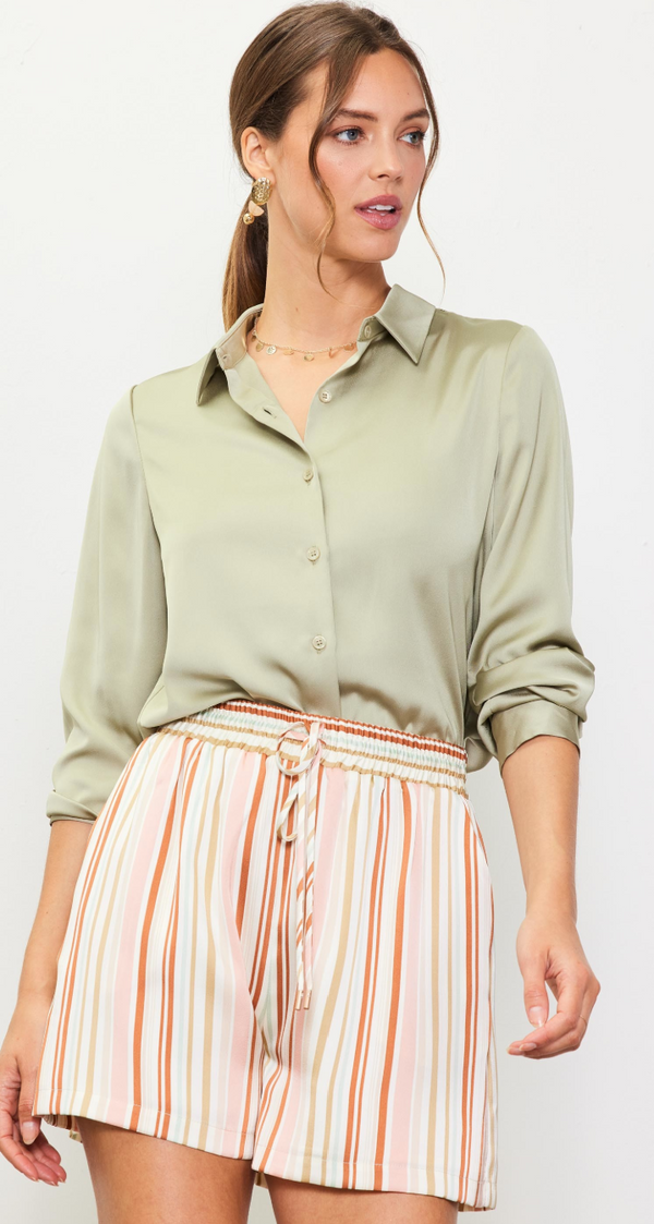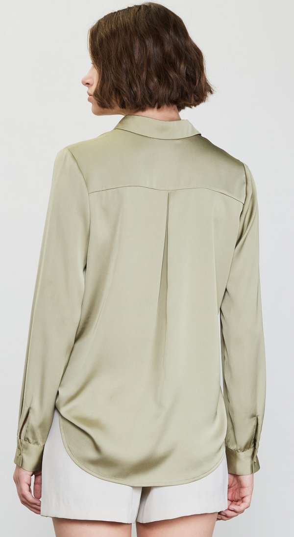 Molly Satin Button Down in Sage