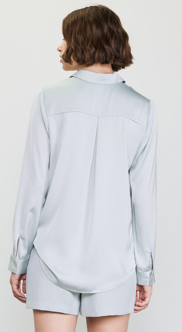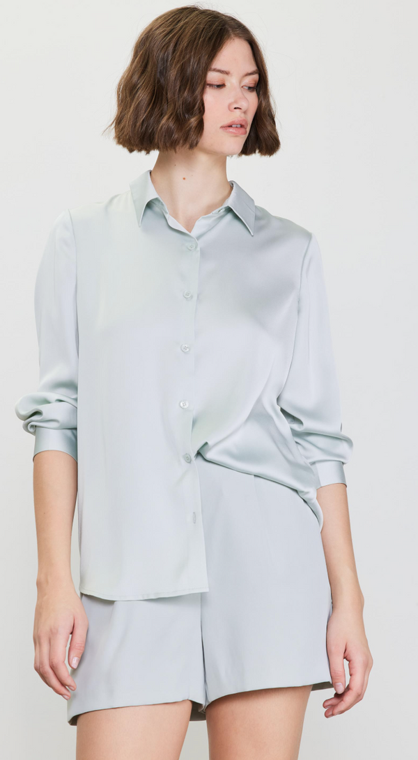 Molly Satin Button Down in Soft Mint