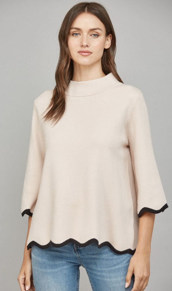 Mock Neck with Scalloped Hems in Blush and Black