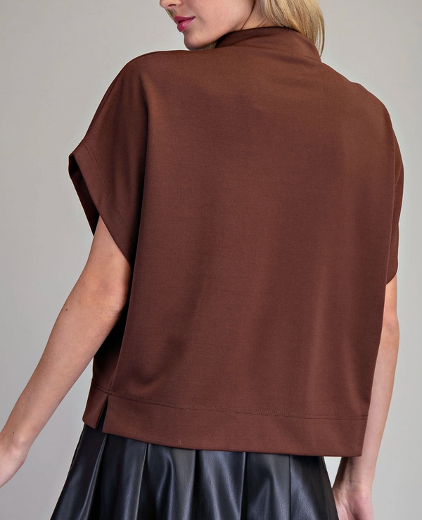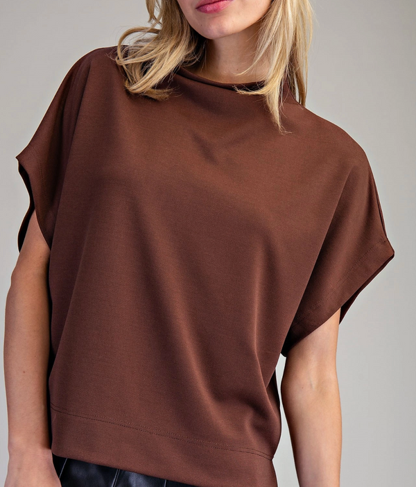Nala Mock Neck Short Sleeve Top in Brown