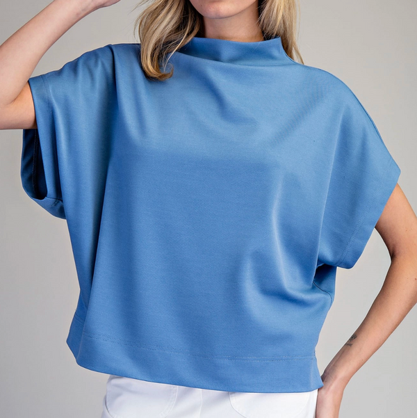 Nala Mock Neck Short Sleeve Top in Denim