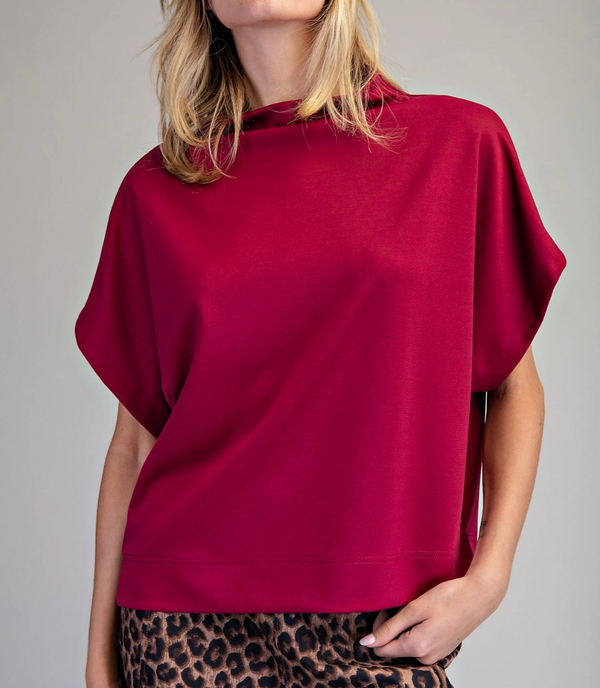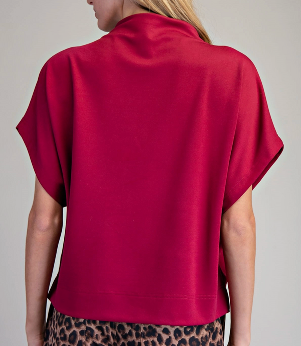 Nala Mock Neck Short Sleeve Top in Wine