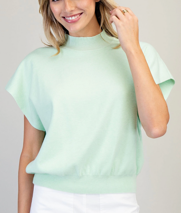 Claudia Mock Neck Sweater Vest in Mint