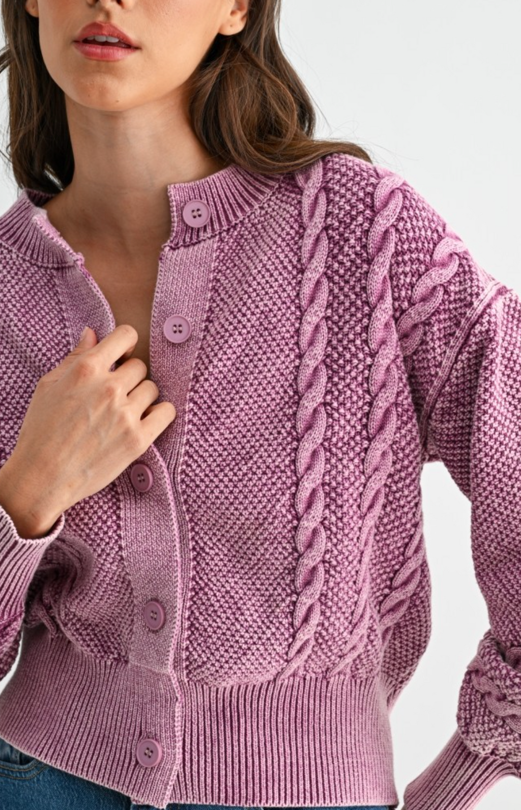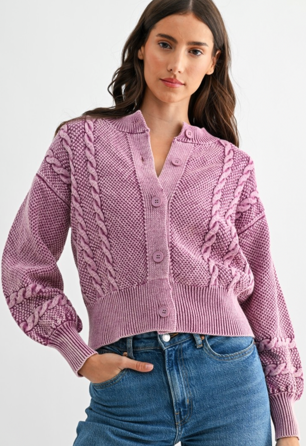 Camilla Cotton Cable Knit Sweater in Berry