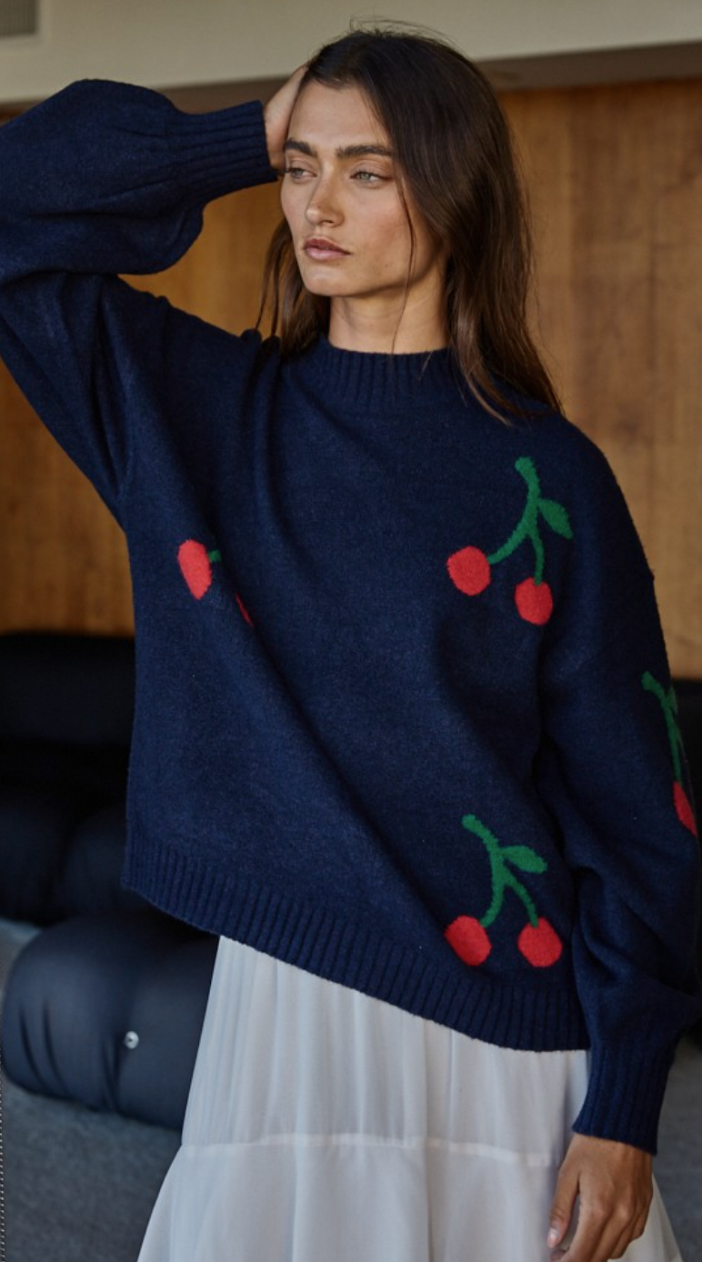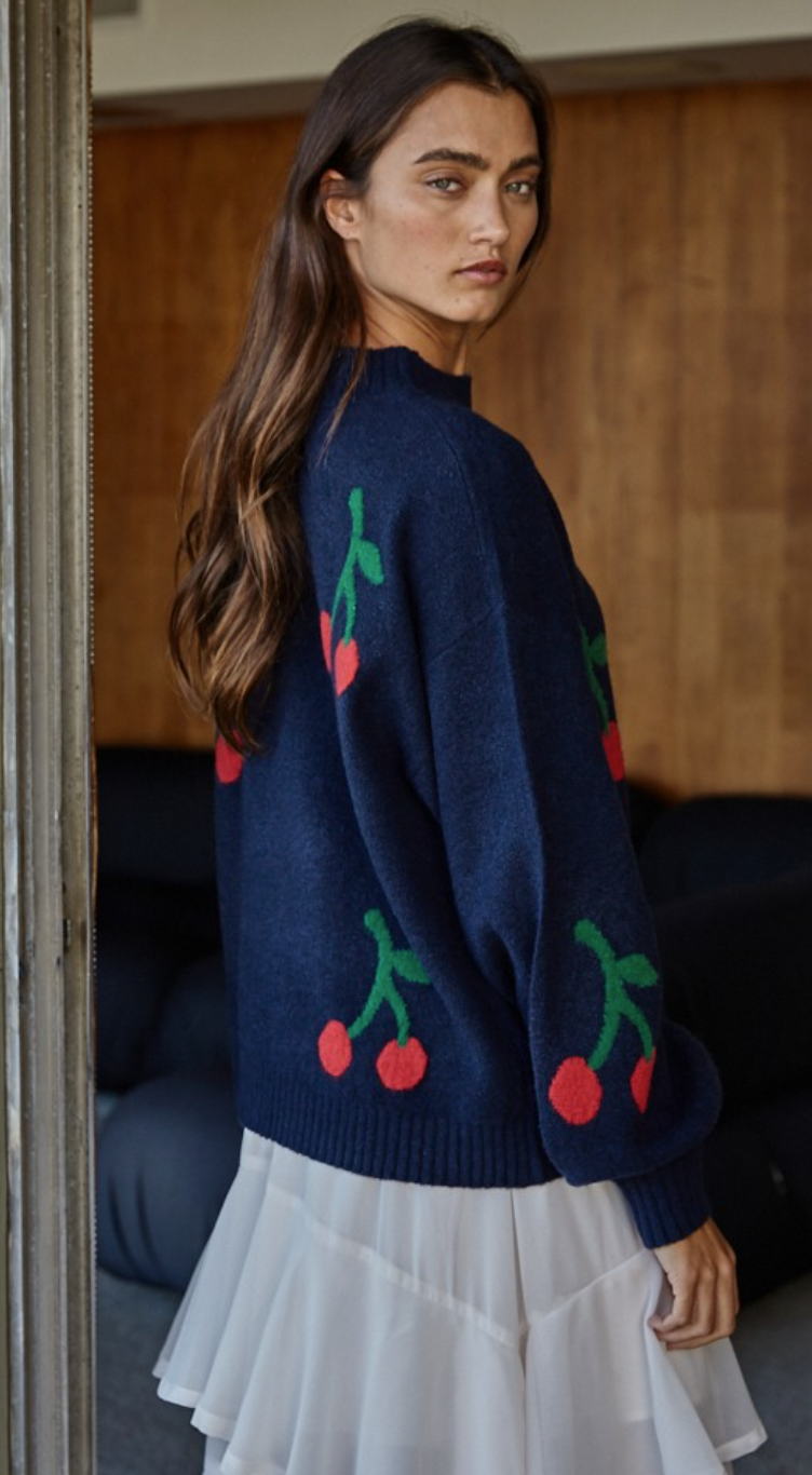 Cherry Mock Neck Sweater in Navy