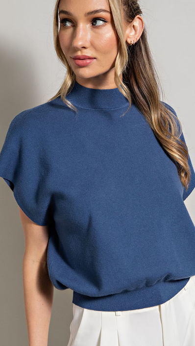 Knit mock neck short sleeve top. Very comfy and easy to pair with any bottoms!