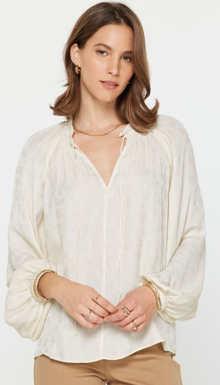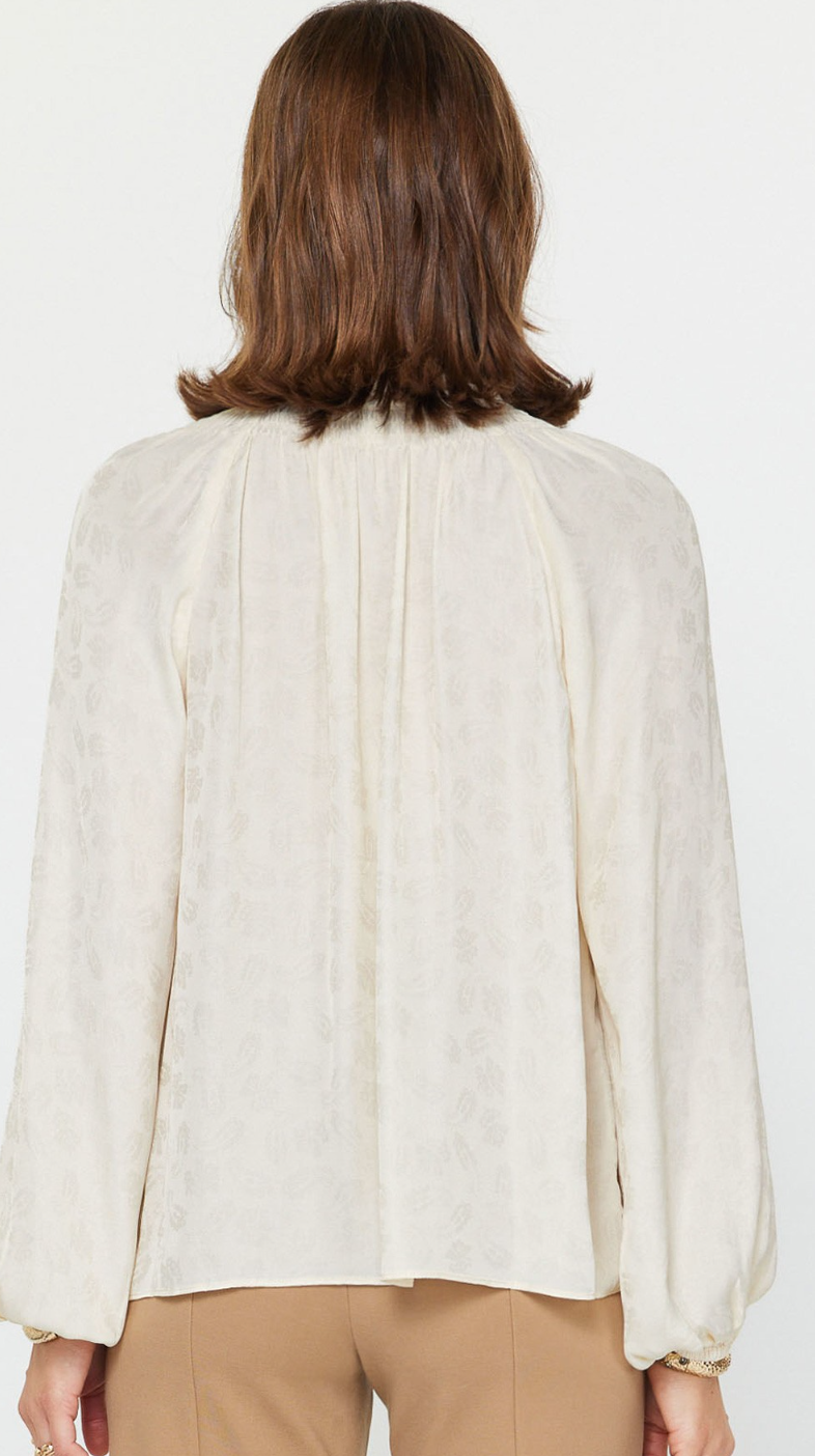Gwen Split Neck Blouse in Ecru