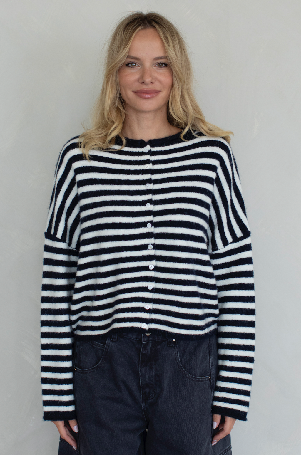 Mabel Striped Cardigan in Navy