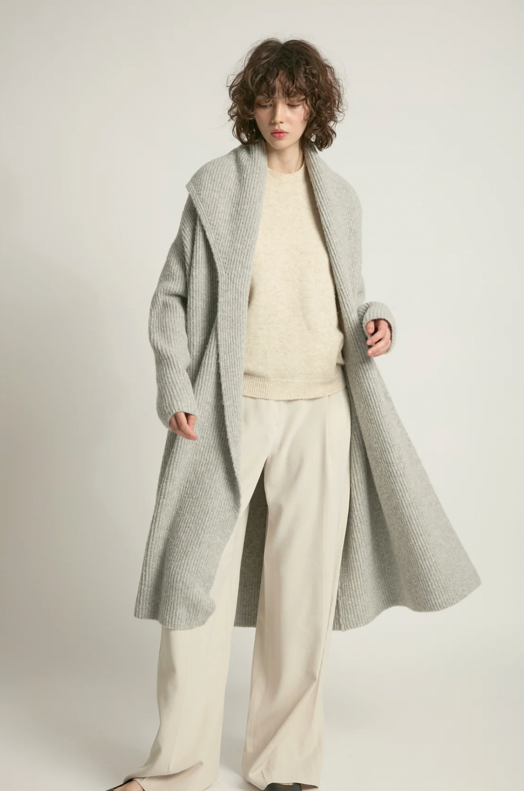 Maya Wide Shawl Long Cardigan in Light Grey