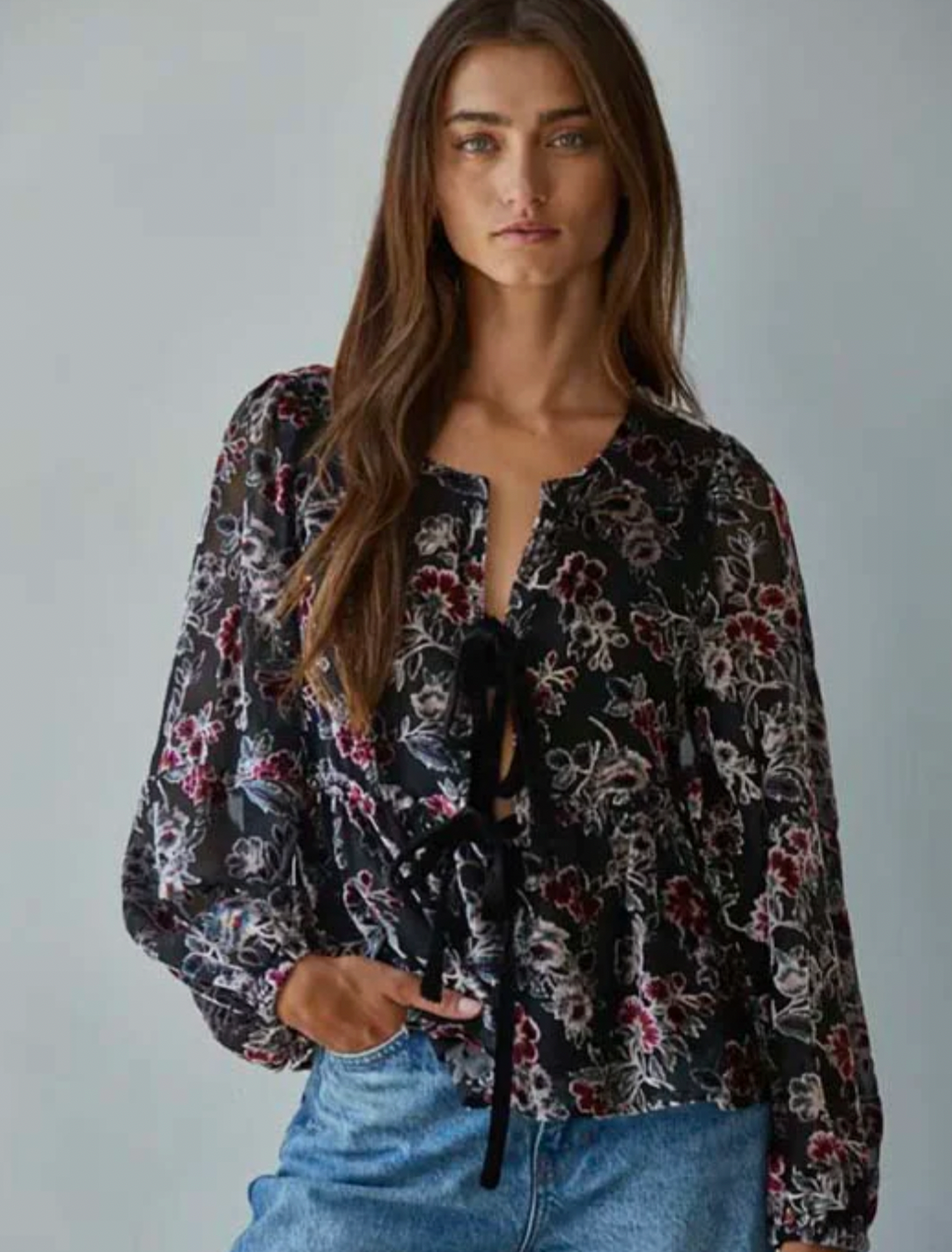 Mikayla Velvet Floral Top in Black- FINAL SALE