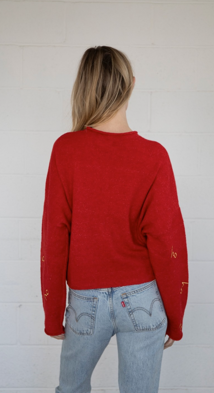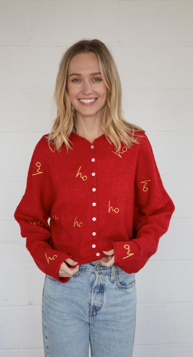 Mila Cardigan with Holiday Embroidery in Red