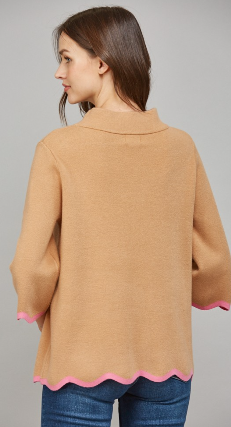 Mock Neck with Scalloped Hems in Camel
