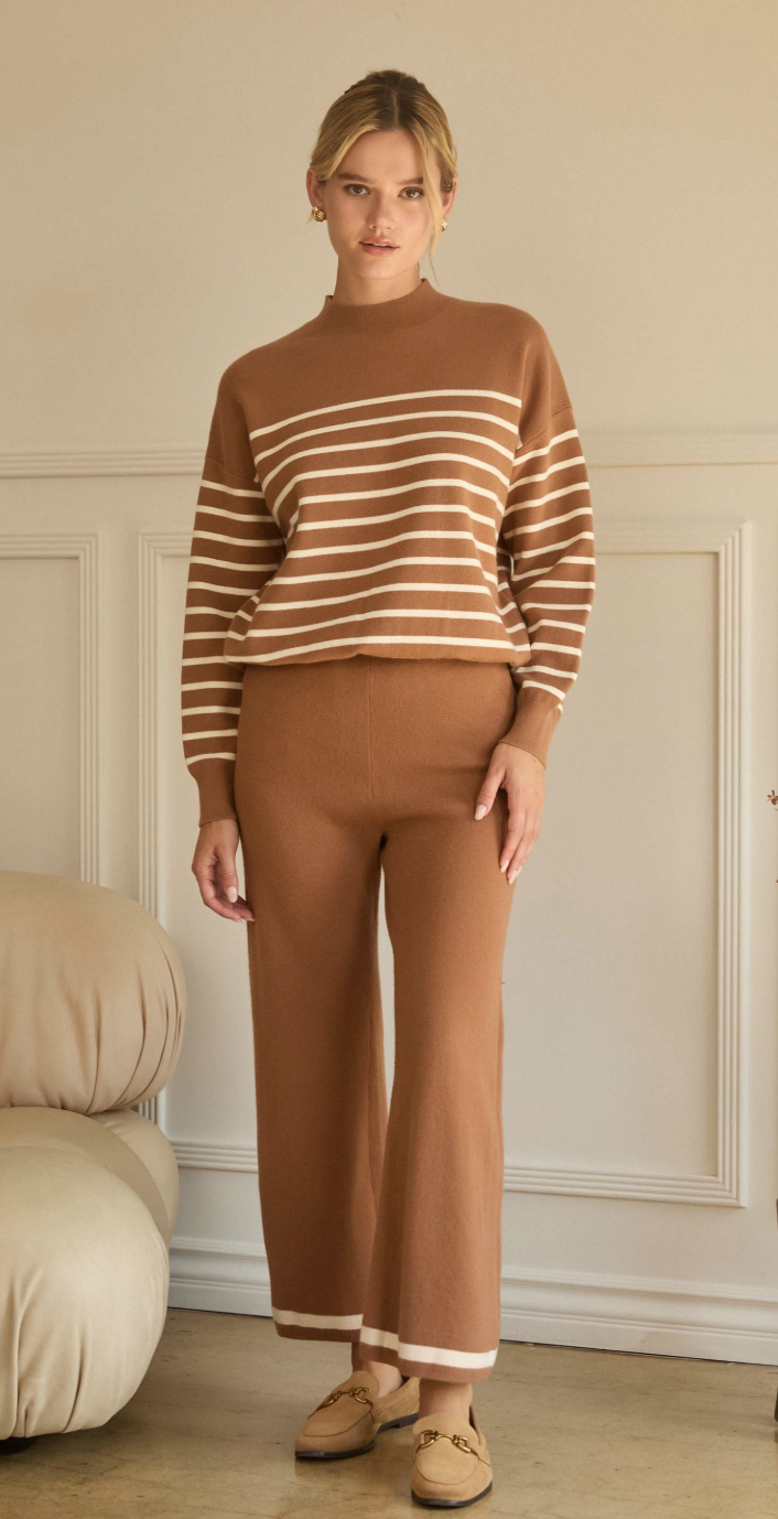 Neil Striped Sweater in Camel and Cream
