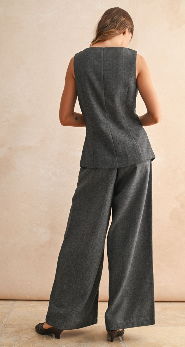 Jackie Herringbone Square Neck Vest in Black and Cream