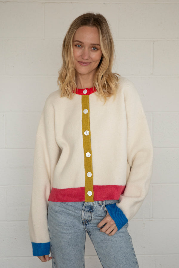 Winslow Contrast Sherpa Cardigan in Cream- FINAL SALE