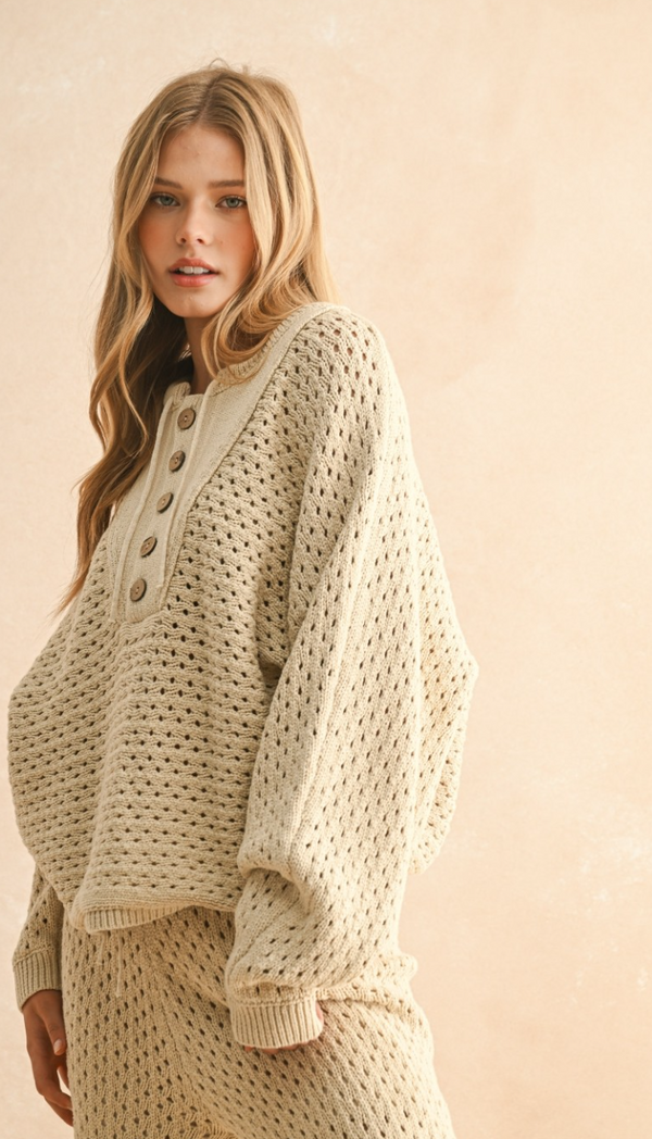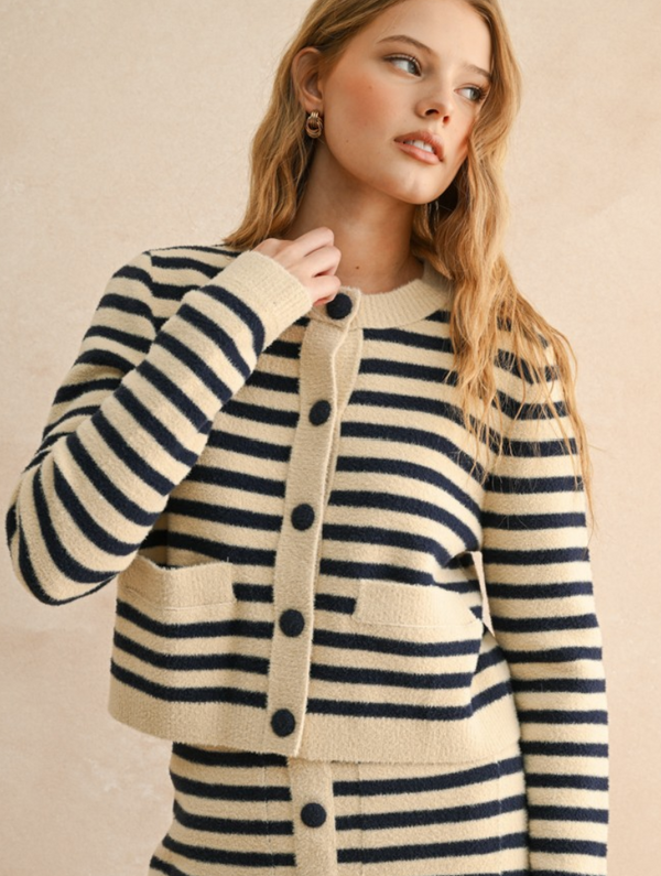 Aleah Striped Polo Sweater in Cream and Navy- FINAL SALE