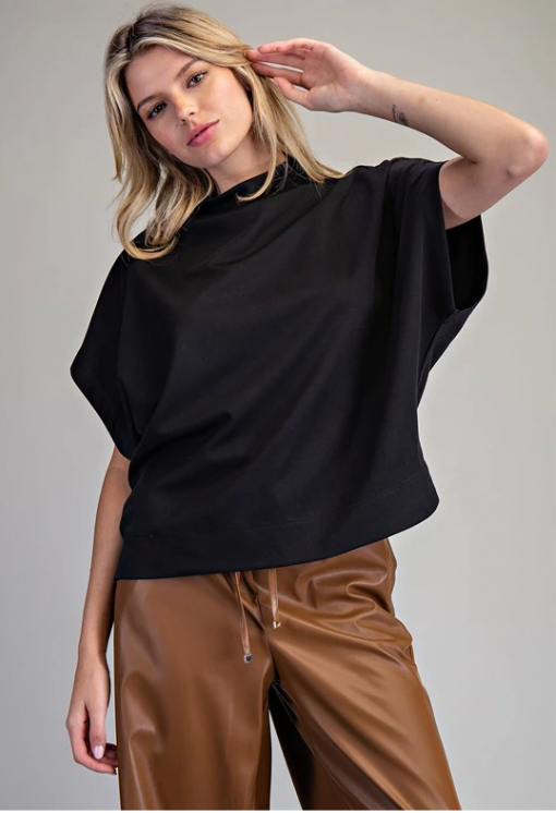 Nala Solid Mock Neck Short Sleeve Top in Black