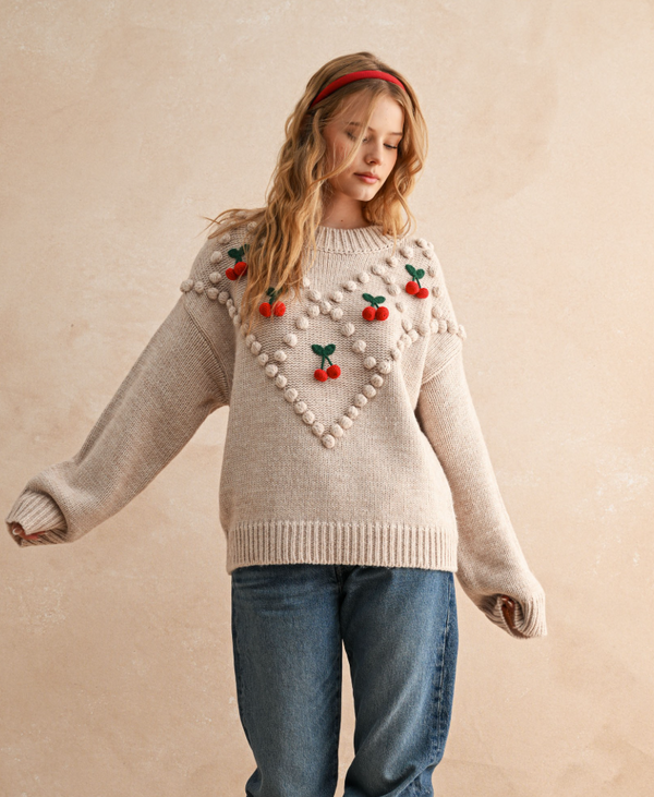 Lisbon Knit Cardigan in Cream and Red- FINAL SALE