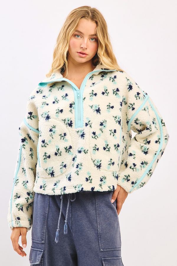 Jones Waffle Knit Zip Up Sweater in Cream- FINAL SALE