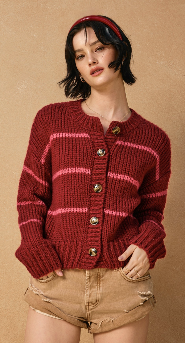 Missy Heart and Argyle Cardigan in Charcoal and Brown