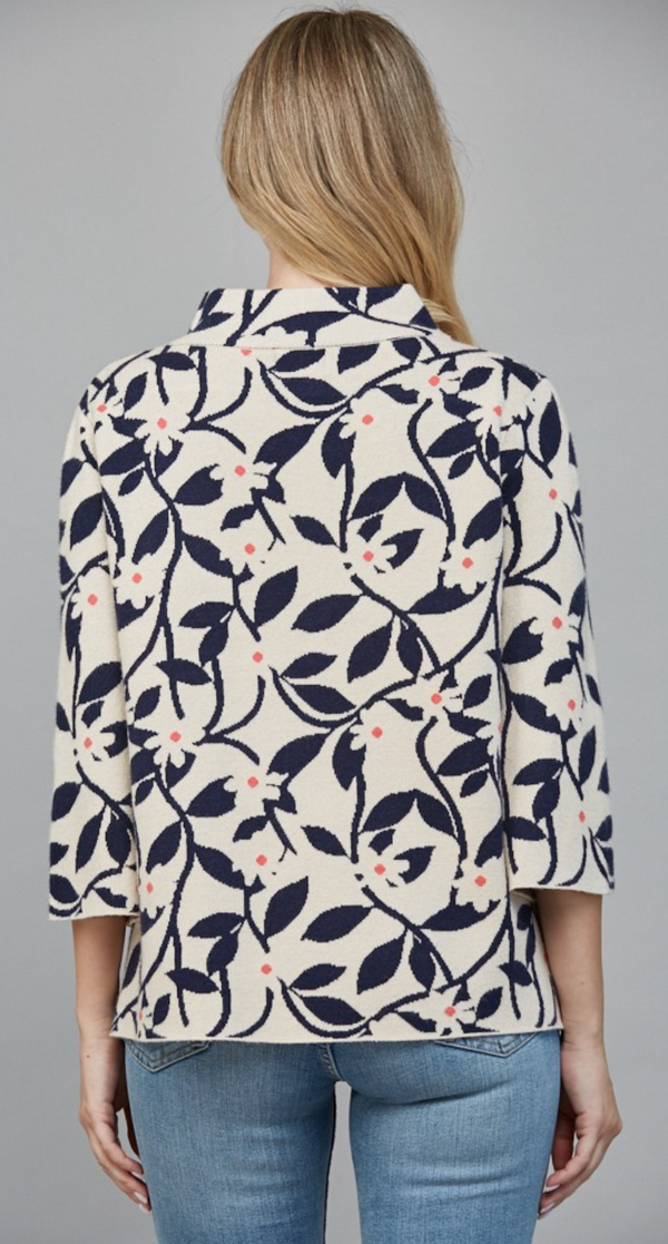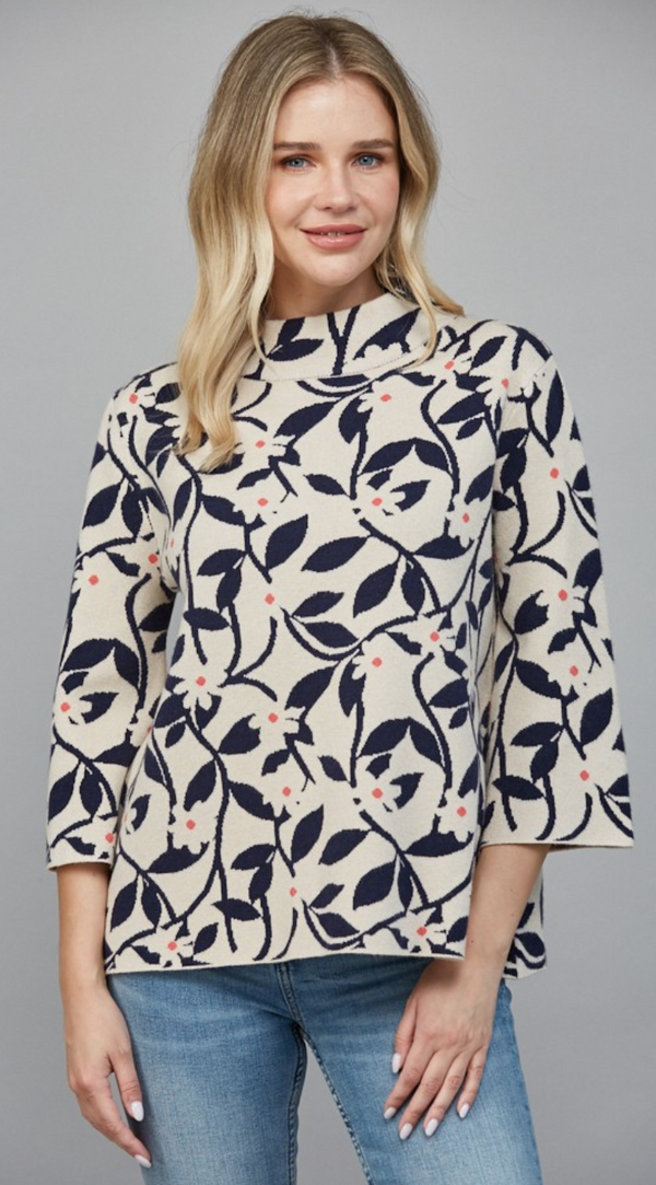 Floral Mock Neck in Cream and Navy