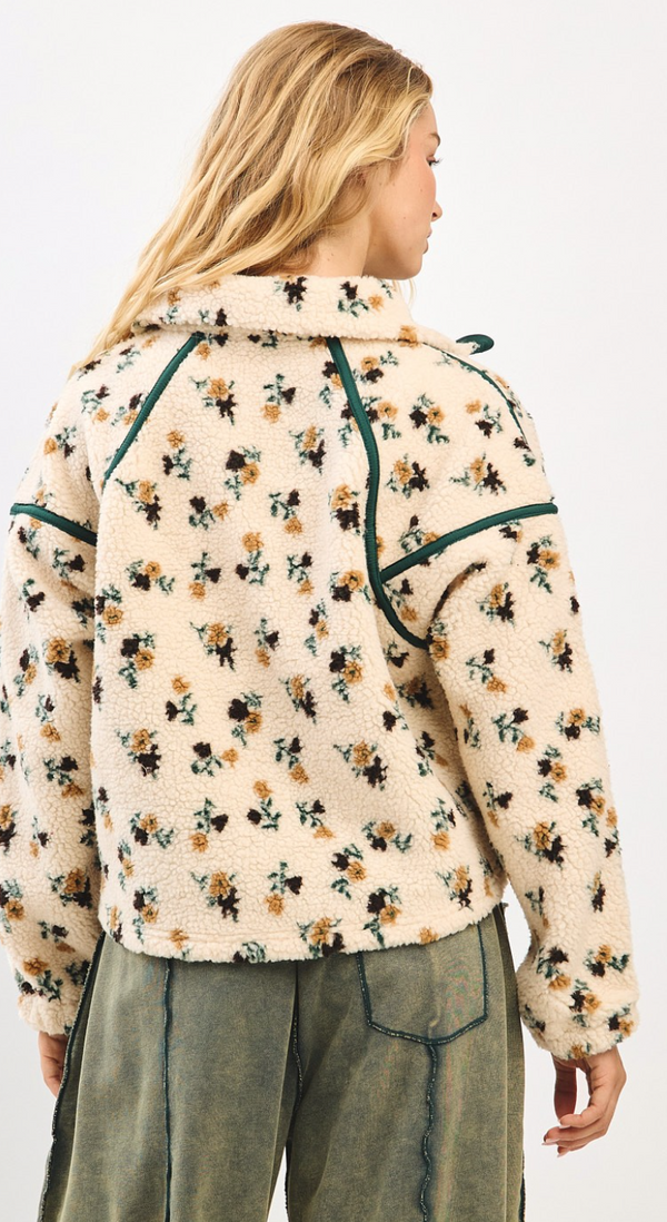 Hailey Floral Fleece Pullover in Cream and Green