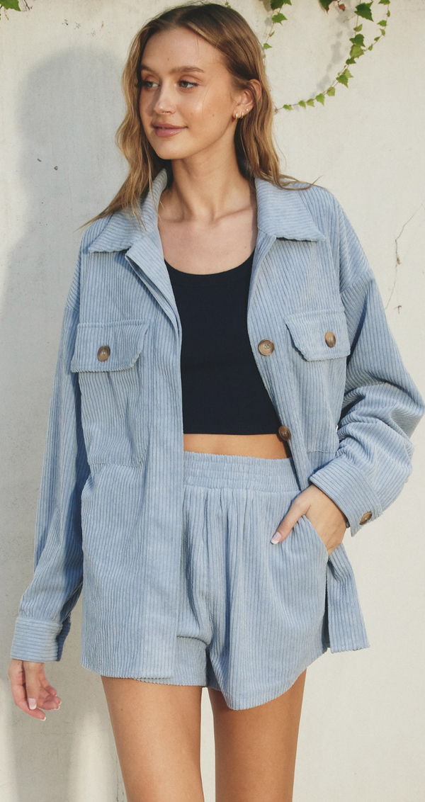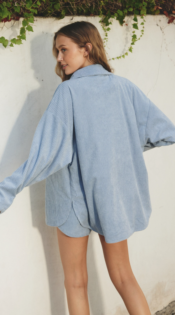 Hattie Oversized Corduroy Shacket in Light Denim