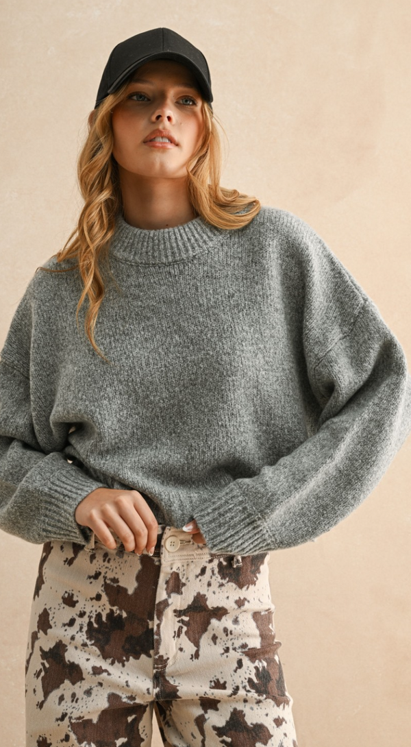 Dylan Mock Neck Sweater in Charcoal- FINAL SALE