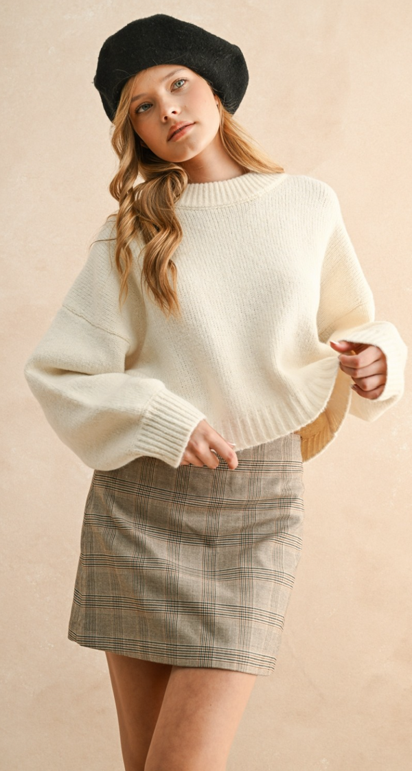 Heather Check Knit Sweater in Ivory