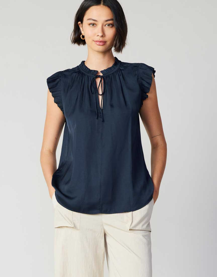 Alice Ruffle Sleeve Blouse in Dark Navy- FINAL SALE