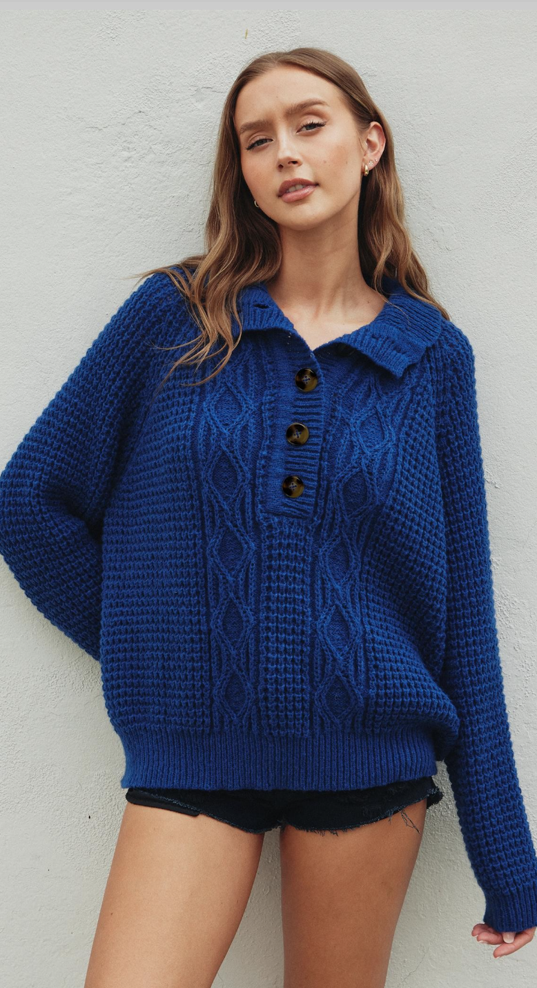 Auburn Boxy Cable Knit Sweater in Sapphire Blue- FINAL SALE