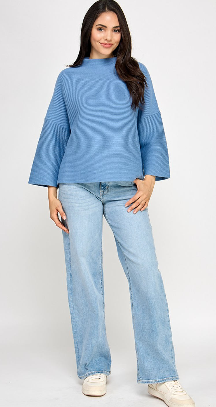 Eastin Ribbed Sweater in Azure- FINAL SALE