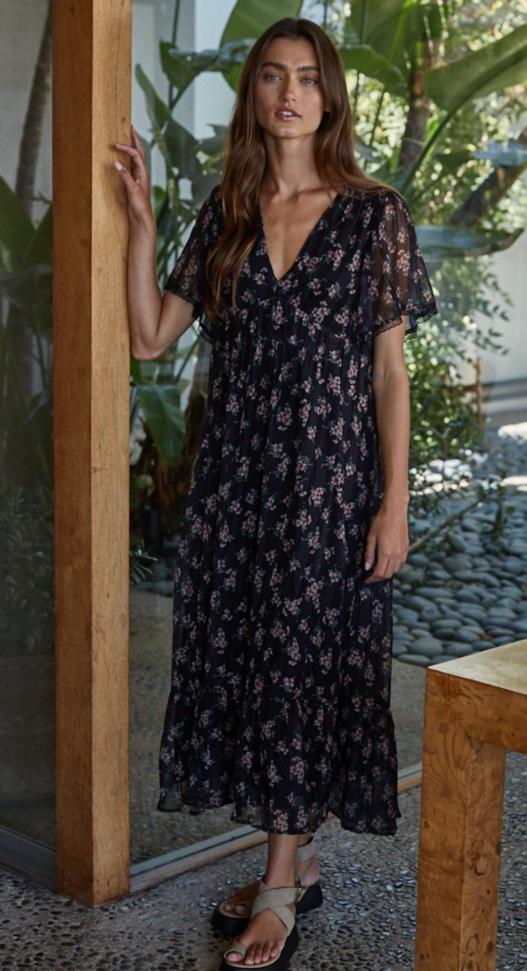 Esther Floral Midi Dress in Black- FINAL SALE