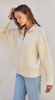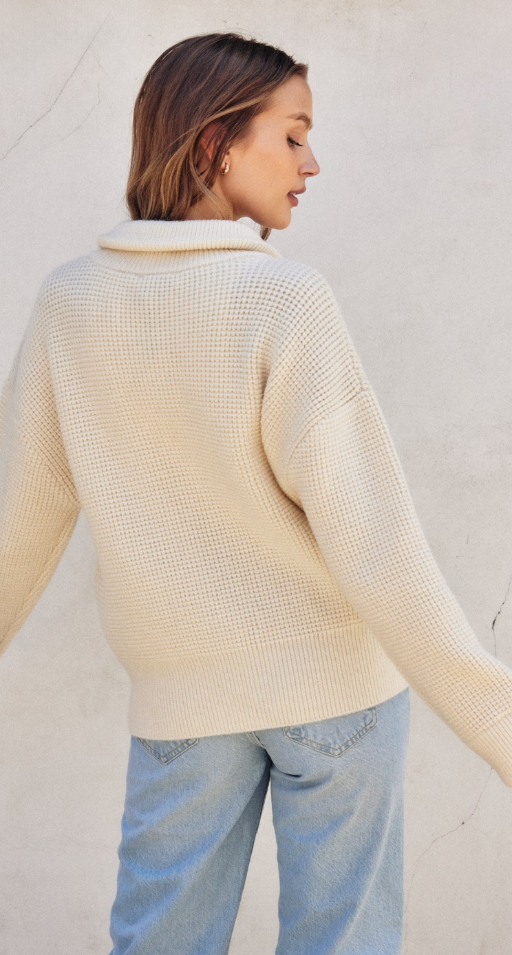 Jones Waffle Knit Zip Up Sweater in Cream- FINAL SALE