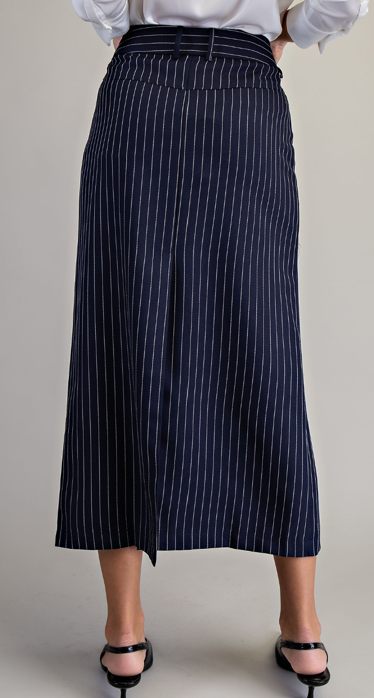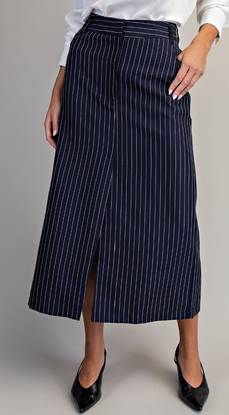 Katherine Striped Midi Skirt in Navy- FINAL SALE