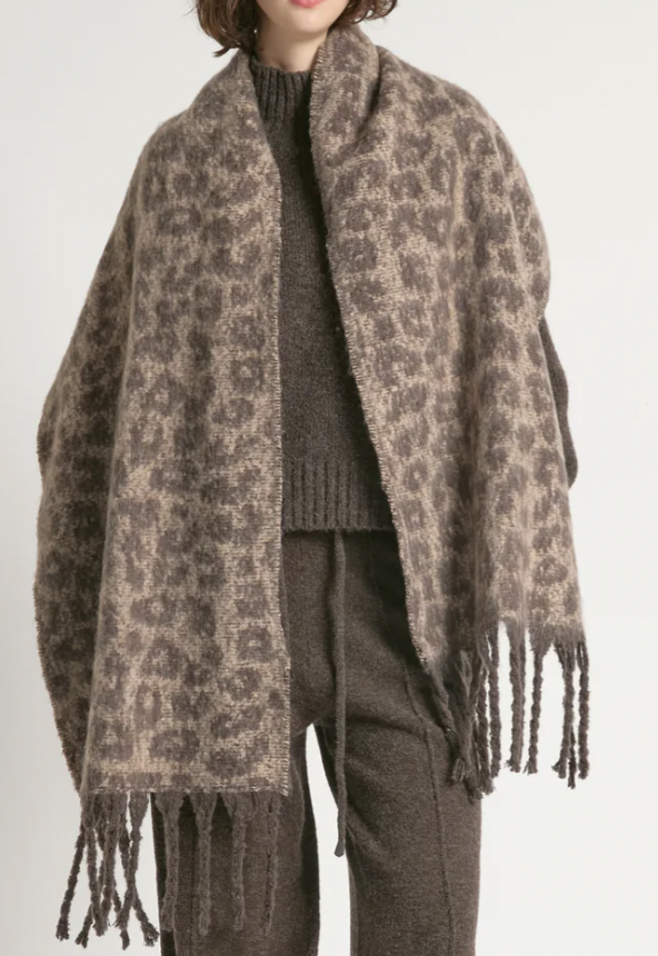 Lauryn Animal Print Tassel Scarf in Mocha- FINAL SALE