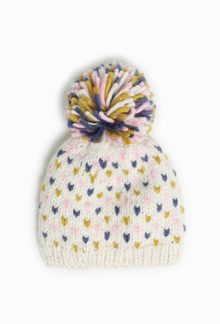 Mini Hearts Pompom Hat in Cotton Candy- FINAL SALE