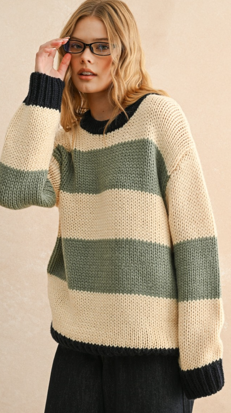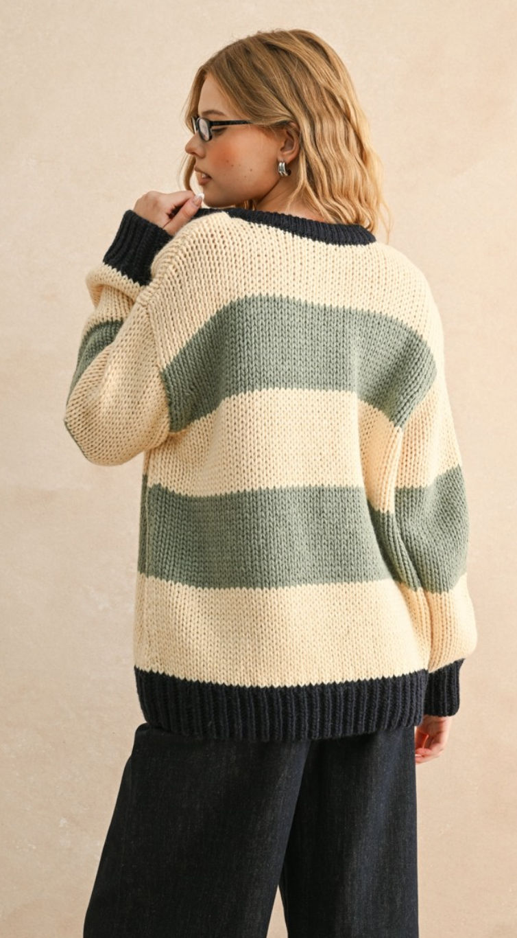 Mitch Striped Sweater in Cream and Sage- FINAL SALE