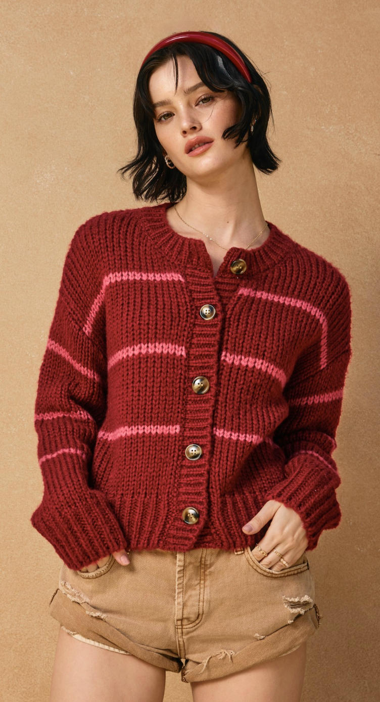Rory Striped Cardigan in Burgundy and Pink- FINAL SALE