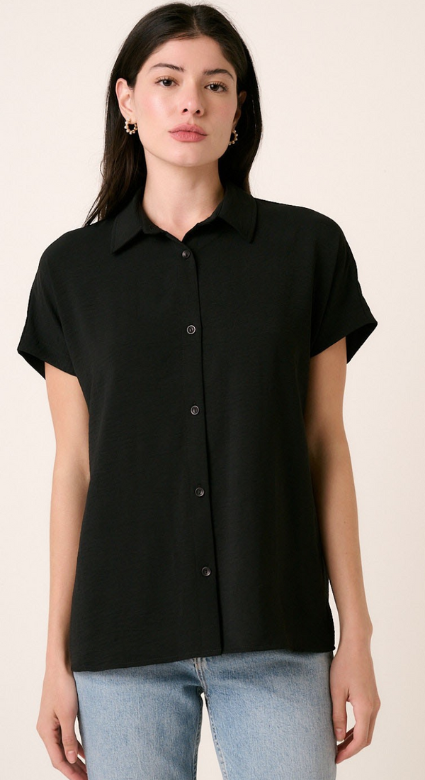 Shane Short Sleeve Button Up in Black- FINAL SALE