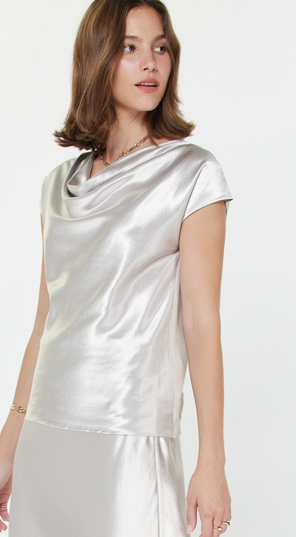 Amika Cowl Neck Top in Silver- FINAL SALE