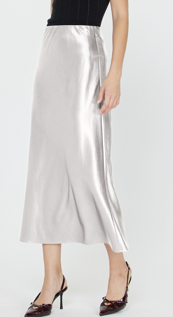 Lucy Satin Slip Skirt in Silver- FINAL SALE