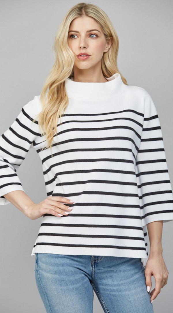 Striped Mock Neck in Cream and Black- FINAL SALE
