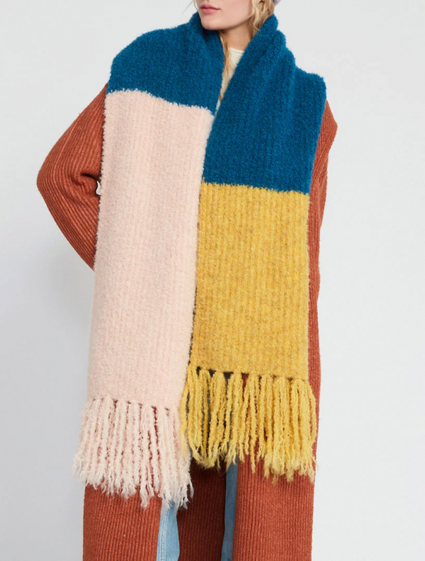 Fran Fuzzy Color Block Scarf in Teal- FINAL SALE