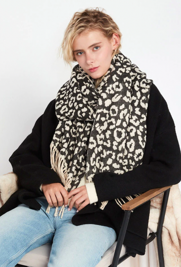 Sasha Reversible Leopard Scarf in Black- FINAL SALE