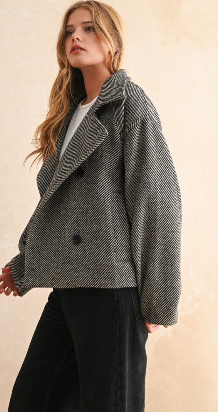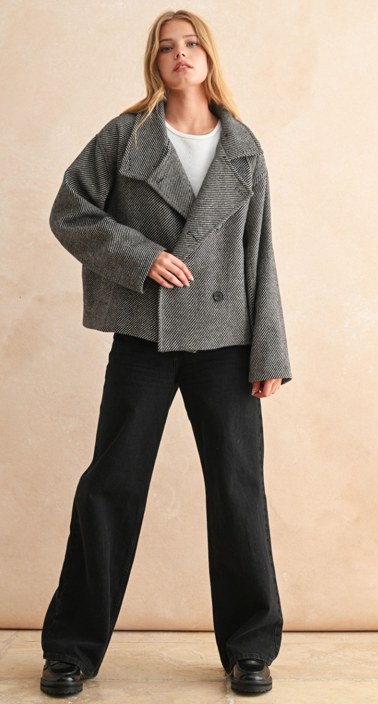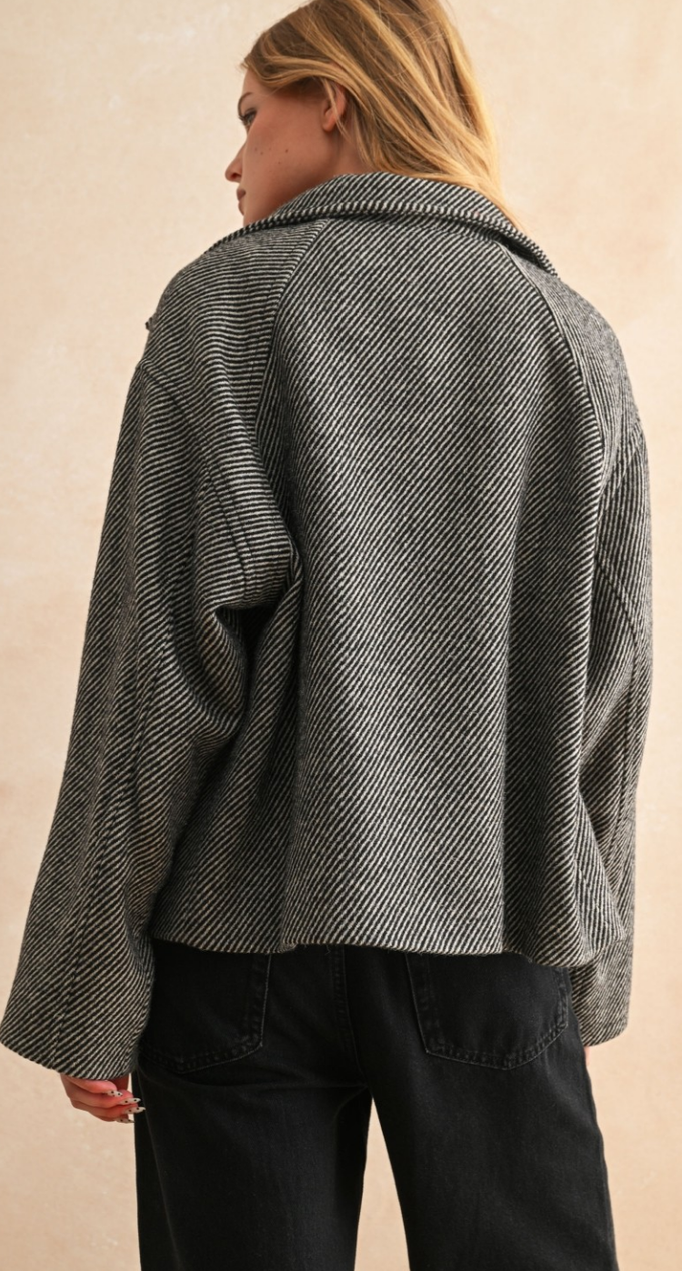 Janet Herringbone Oversized Jacket in Black and Cream- FINAL SALE